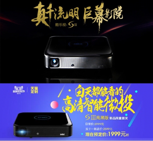 推荐理由:天屏影院S3是全球首款真实亮度超千流明LED智能投影,获得“国家数字音视频及多媒体产品质量监督检验中心”认证亮度:1081ANSI流明,符合SMPTE (美国动画与电视工程协会)规定的家庭影院亮度标准,分辨率为1280*800(支持1080p/4k硬解码),即使在白天不拉窗帘的情况下也能为用户提供鲜活明亮、栩栩如生的超百寸3D巨幕。配上著名音箱品牌惠威(HiVi)为S3量身定做的HiFi音响系统,使得S3的音效更为明亮、有层次,同时加入了蓝牙音箱功能、同轴音频输出接口,音响系统更为科学实用。钜惠活动:亮黑版首发,只要1999元!不过要强调一点的是,仅限599个名额,只要你守在双十一当天那一刻,笔者相信小伙伴们抢到的几率还是蛮高的。双十一当天酷乐视方面给出的促销诚意是:现在前往酷乐视天猫旗舰店,支付双十一活动预售定金,获得秒杀资格,双十一当天将放出599名资格,先到先得。已预付定金但未获得1999元资格的小伙伴,按照活动2599元价格支付的可获得100寸电动幕布。 购买链接:https://coolux.tmall.com/search.htm?spm=a1z10.3-b.w11272423-13826004851.2.jnCnCq&orderType=hotsell_desc&scene=taobao_shop |