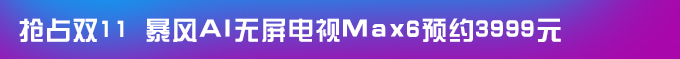 2017年11月6日,暴风TV正式发布新品牌“暴风AI无屏电视”,推出首款产品——暴风AI无屏电视Max6。目前暴风AI无屏电视Max6已开启预约,并将于11月11日0点正式发售,定价为3999元。用户预约抢购可直减100元,晒单评价返200元,首发福利低至3649元。同时,VIP影视会员可享有首次免费安装和整机免费维修1+N年(N为首次购买VIP影视会员时长)。更高的品质,更好的体验,现已开启预约。 暴风AI无屏电视采用了德国欧司朗环氧树脂LED光源:高达30,000小时的寿命、绿色环保照明无污染、漫反射成像温和自然光。并且,单反级的镜头标准造就镜头黑科技:F1.8大光圈,7层镧系光学玻璃镜头,相比行业5层树脂镜头,成像效果更出众。Max6采用1.2:1的投射比,在相同距离条件下实现更大的画面呈现,同时,仅2.7cm²大小的DMD芯片微镜原件上,拥有207万个反光镜片,带来高对比度的真实观影体验。Max6还能实现上下、左右梯形校正及遥控自动对焦,位置移动再也不会成为观影阻碍。暴风AI无屏电视“用电视的品质做真正的无屏电视”,将全面升级家用投影仪的用户体验。