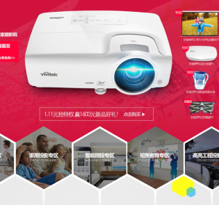 在本次Vivitek(丽讯)天猫旗舰店“11.11”的多重钜惠中,限时特价无疑是最吸引人的,简单明了,无需“算计”。特价产品涉及家用、商务、QUMI产品线共计13款不同型号,价格降幅从100元到数百元不等,价格极具诱惑力。 除了限时特价,Vivitek(丽讯)还为11.11购买投影机的网友准备了多款惊喜豪礼,只要在11.11当天购买任意一款投影机,均可获得超值礼物一份,包括激光投影笔、微投便携支架、3D眼镜等,令你的投影机如虎添翼。最吸引人的当属天猫首发家用投影机H658F,11.11当天成交价低至4609元,11.11购买还可获得3D眼镜两副和一台蓝牙音箱,无需单独购买配件,即可在家享受3D大屏视听盛宴。