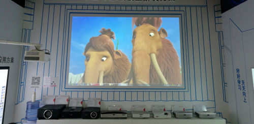 DET还带来了学校礼堂、会议室的显示解决方案,其采用一台DET-60U激光类工程投影机作为显示设备,投影140寸的大画面,展现了激光技术所独有的高清完美画质。